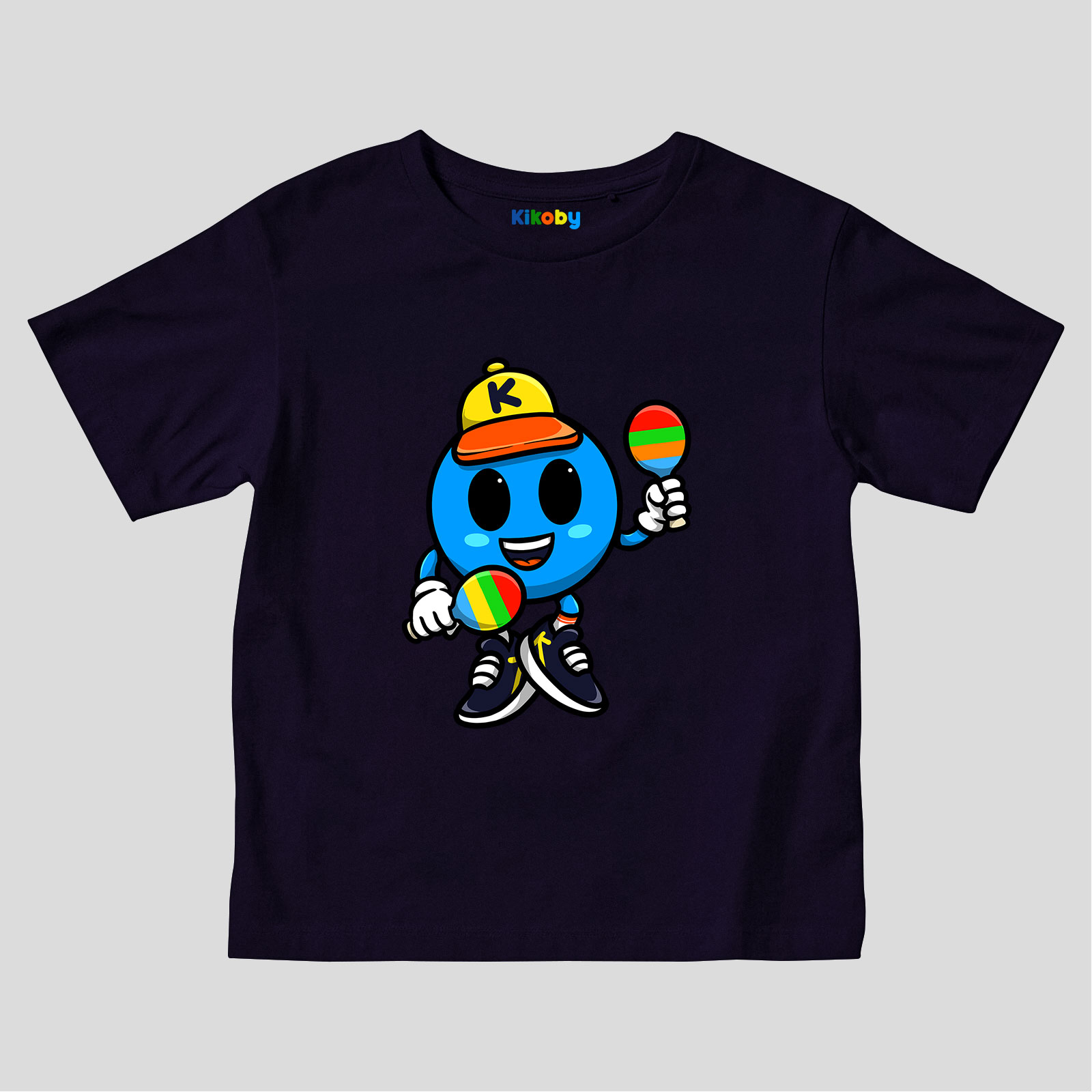 - T-shirt enfant manches courtes imprimé Kikoby joue des maracas.