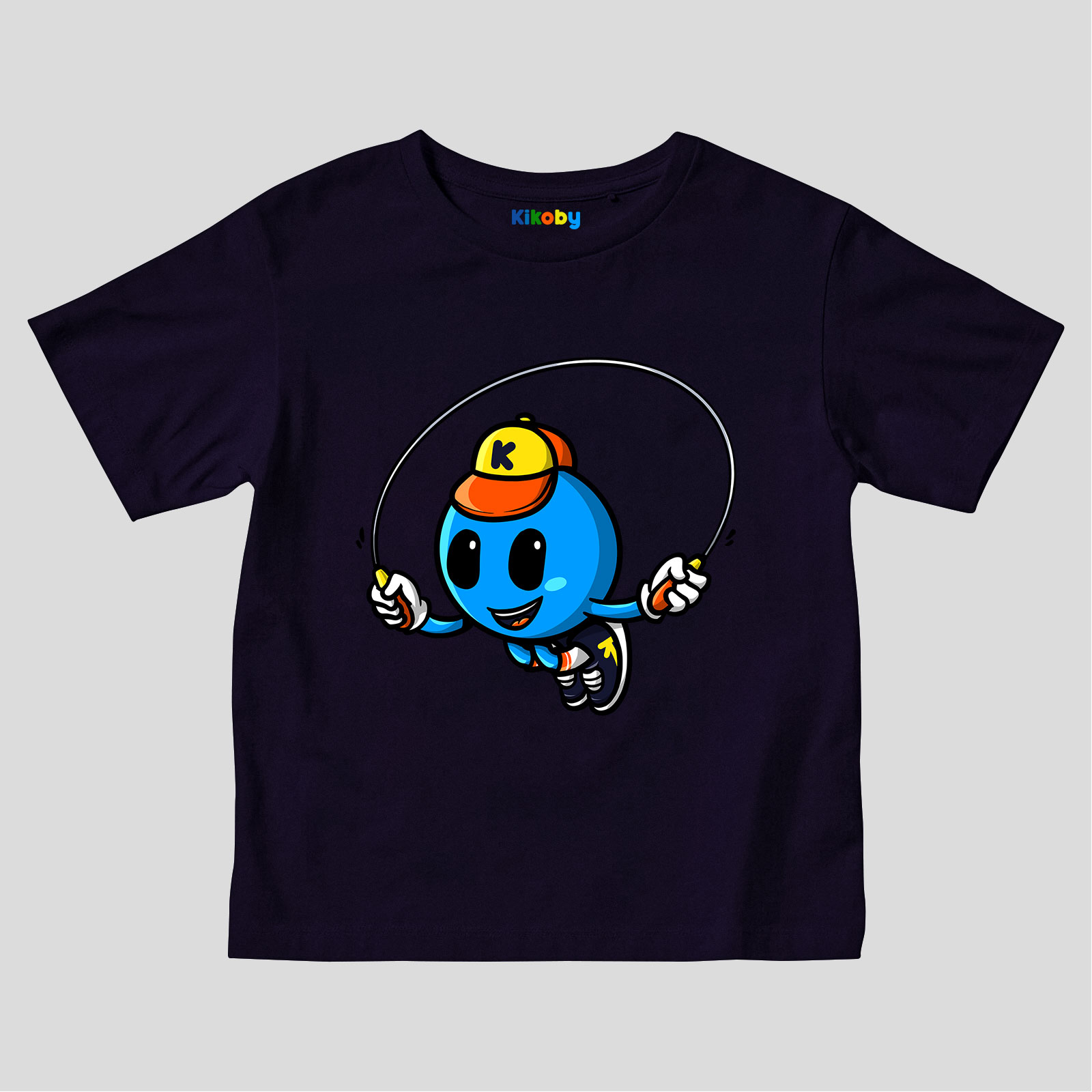 - T-shirt enfant manches courtes imprimé Kikoby saute à la corde.
