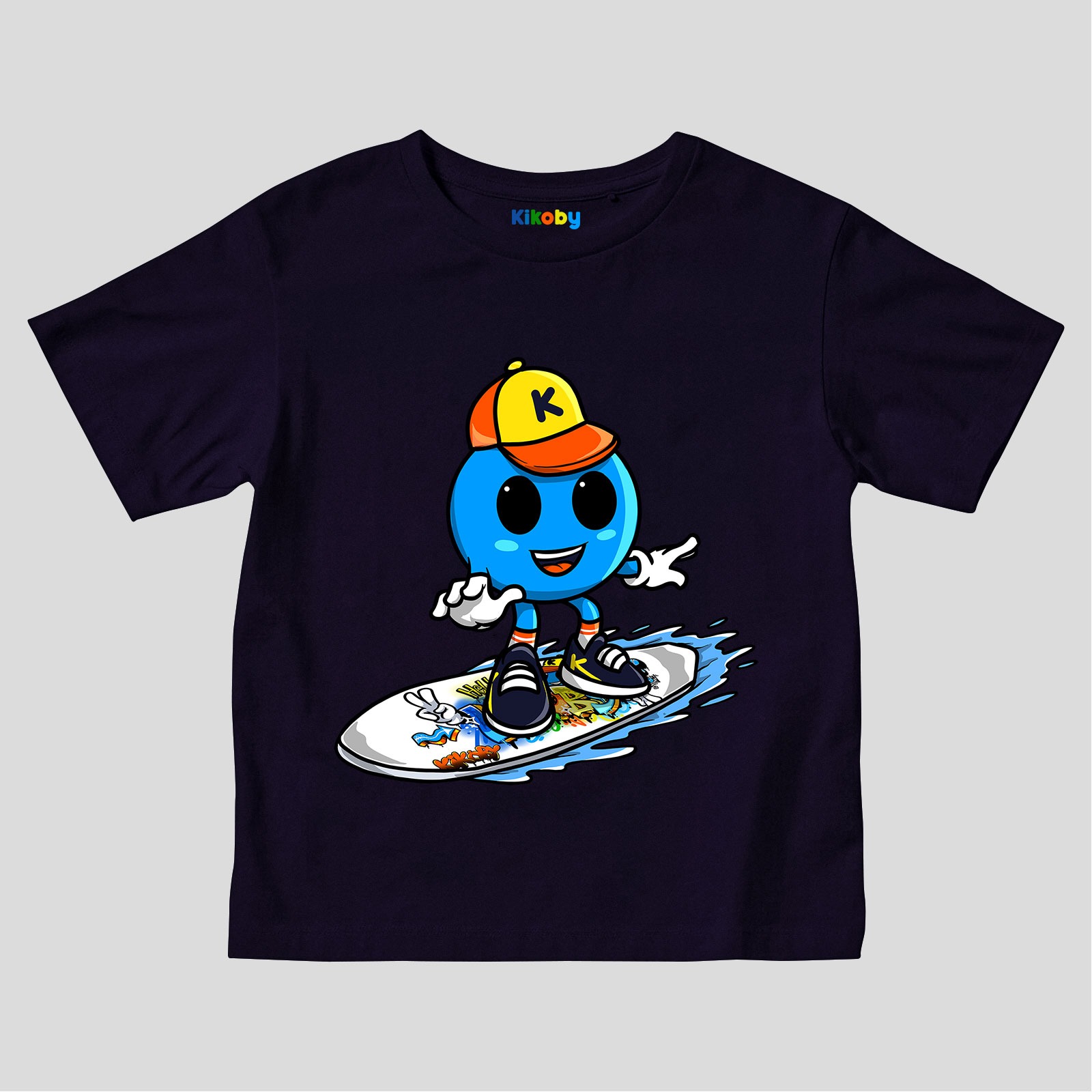 T-shirt Enfant Kikoby surfe sur la vague - Bleu marine | Kikoby